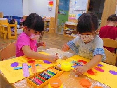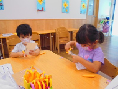 のりを使ってペタペタ…楽しんで取り組んでいます。