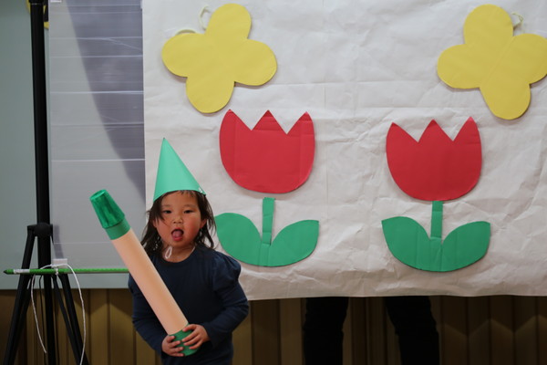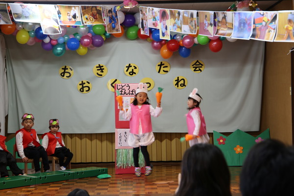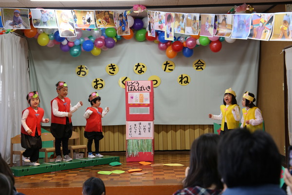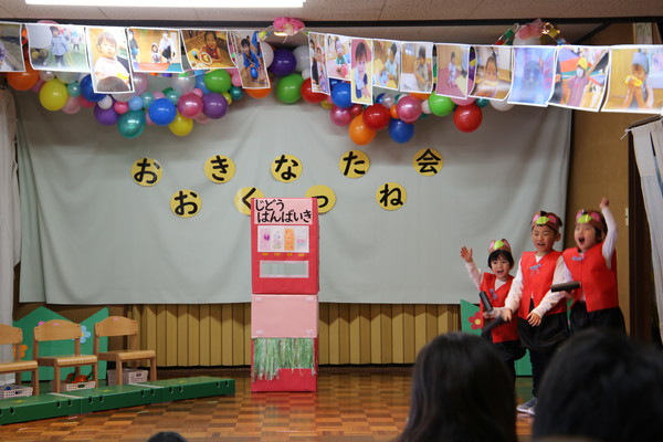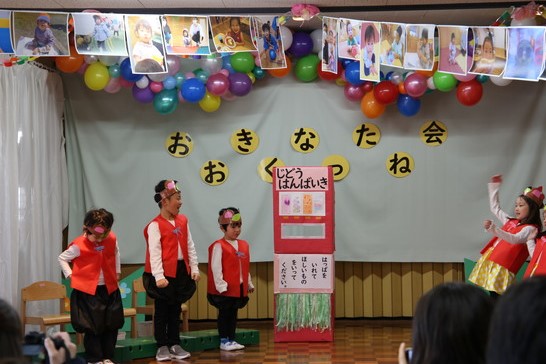 最初の演目は4・5歳児による劇「ぽんたのじどうはんばいき」。
