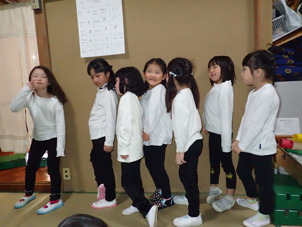 緊張した様子の子や「今日おおきくなったね会だね!」とニコニコの子と様々ですが、どの子もとても楽しみに発表会を待っていました。