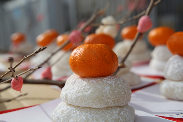 鏡餅はそれぞれ持ち帰り、おうちで飾りますが、餅花は玄関前に飾る事にしました。