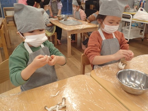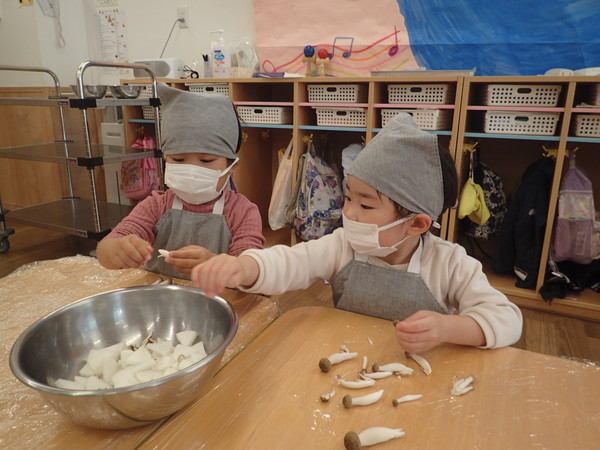 3歳児さんは、きのこを担当しました。