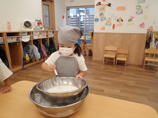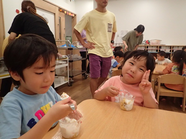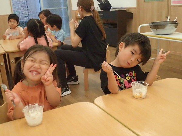 「みんなで作ったアイスおいしいね~」とお話しながら食べていましたよ!
