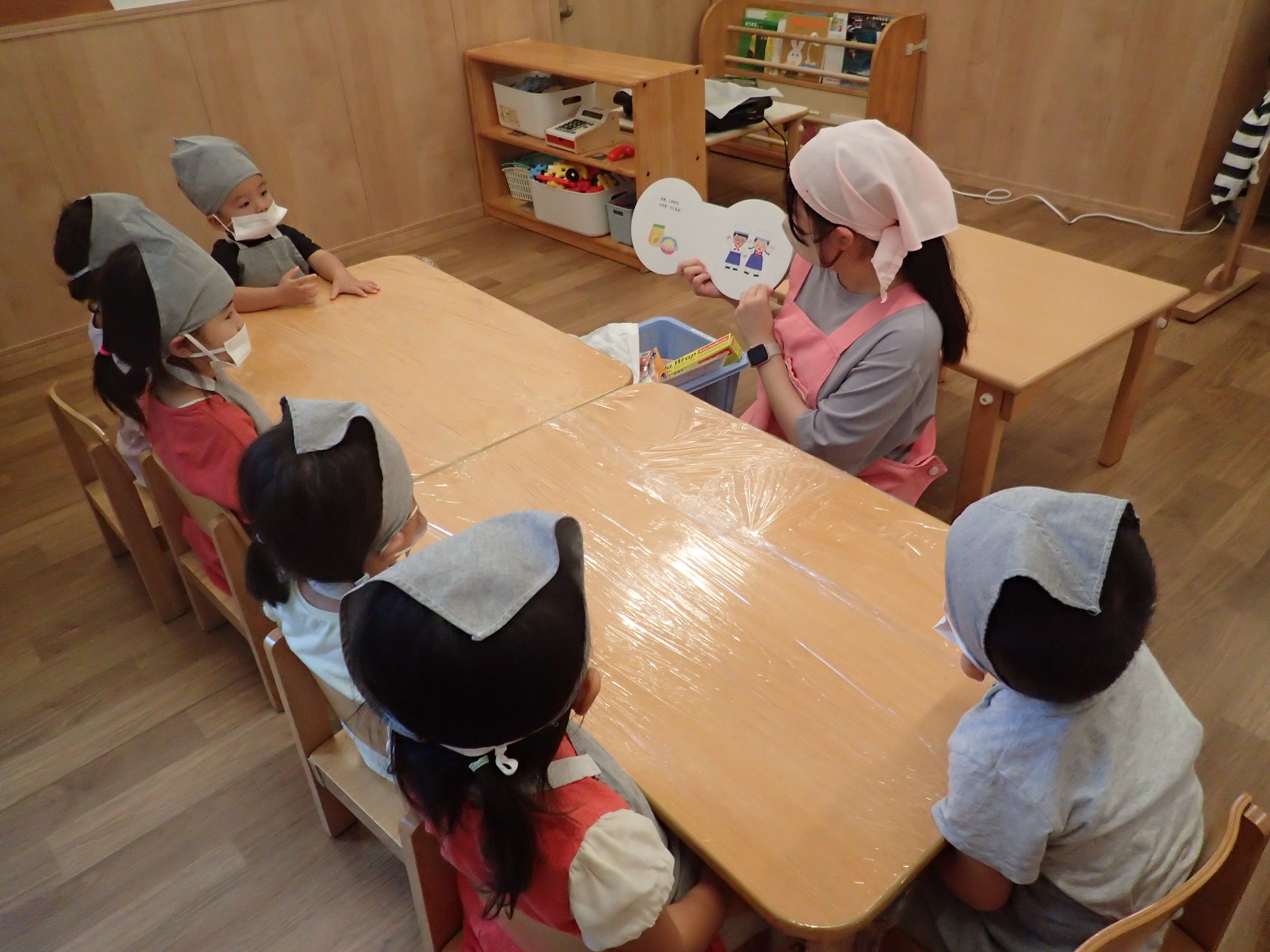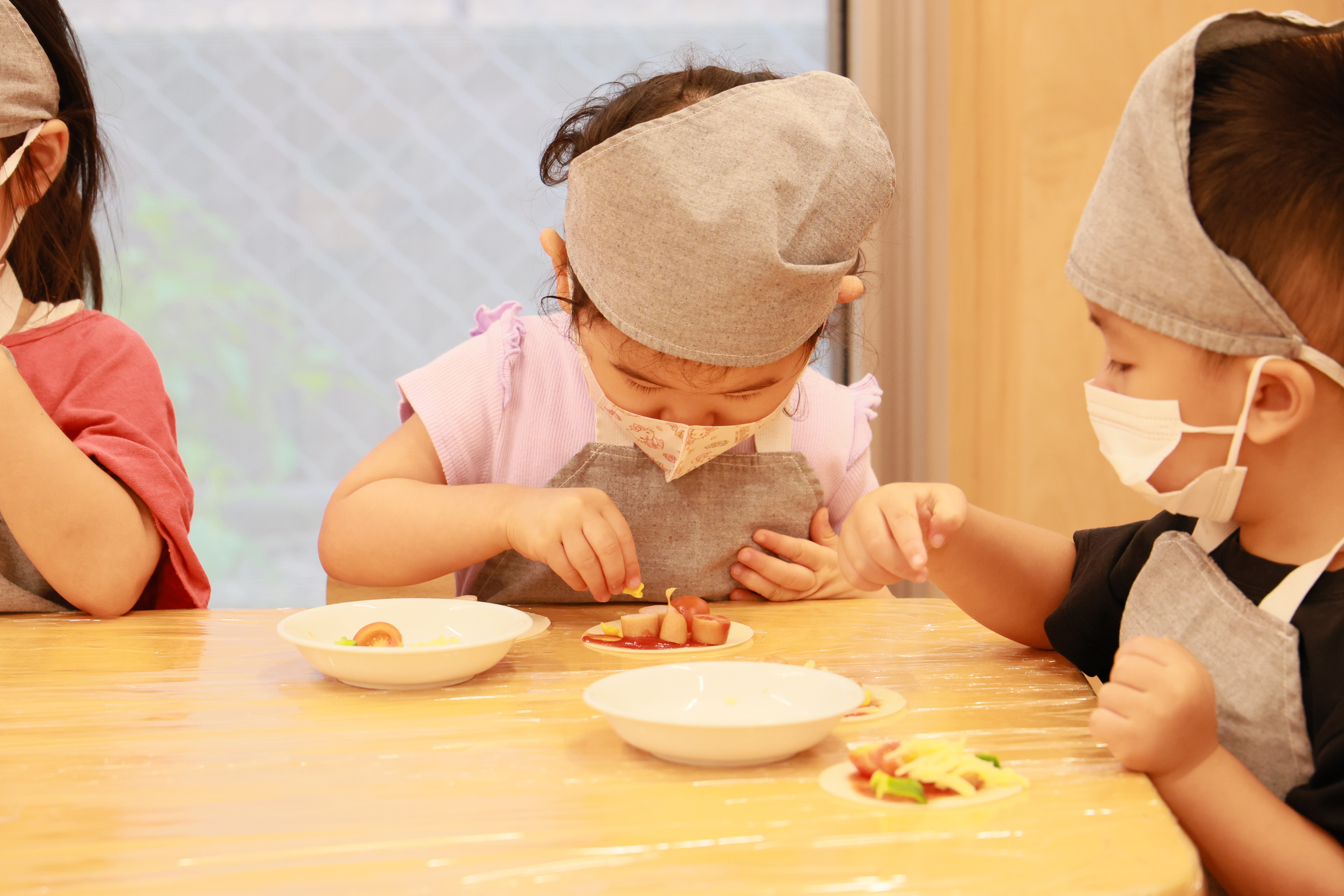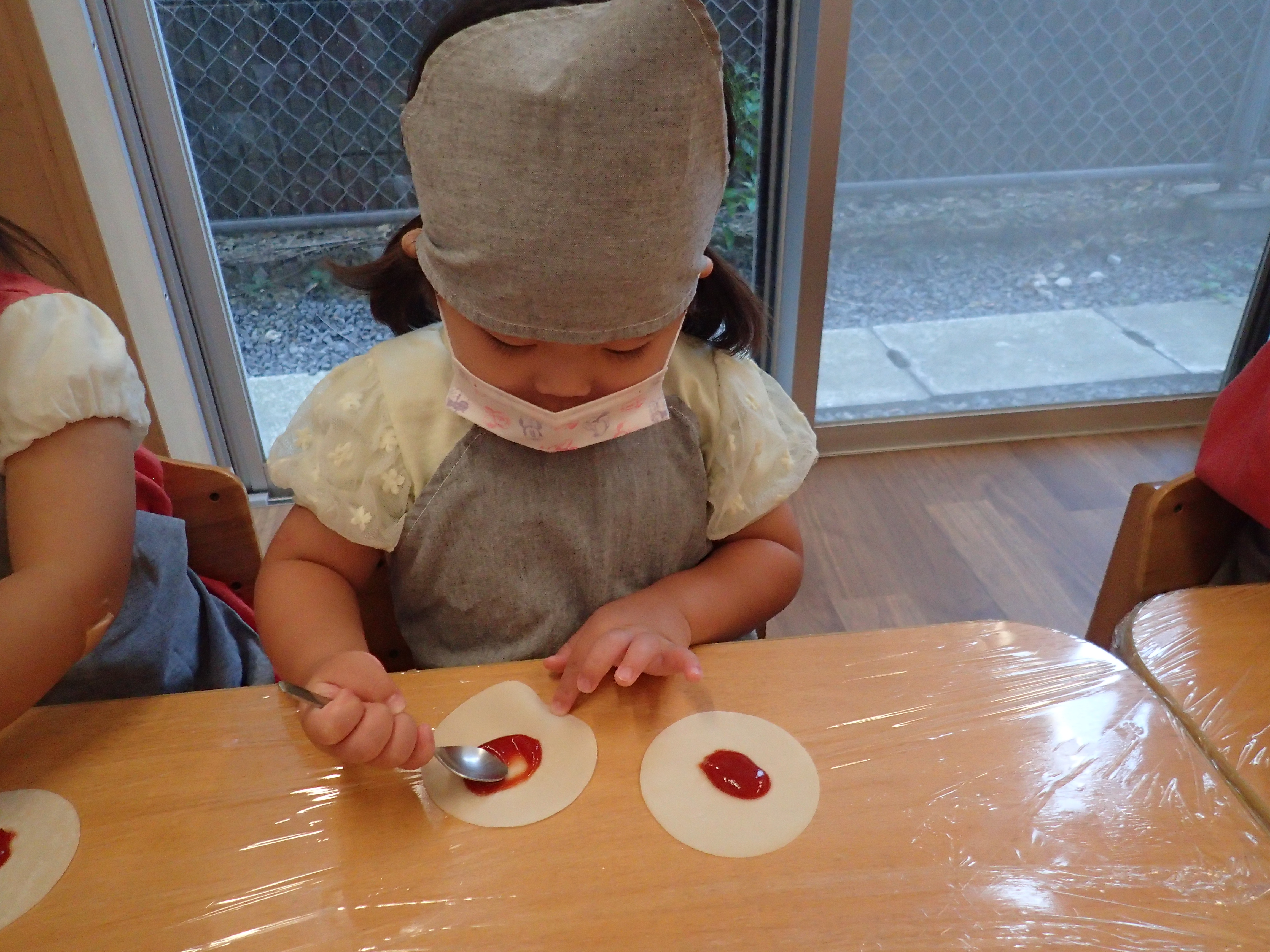 8月の食育は「夏野菜でピザを作ろう!」でした。初めてのクッキングでワクワクドキドキ