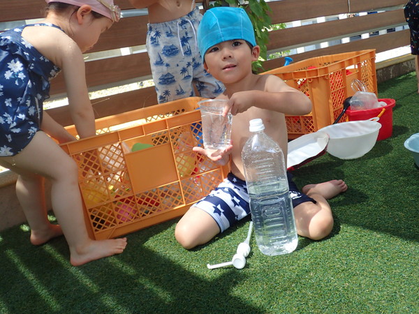 石鹸や色水、氷を使ってジュース作りを楽しんだり、宝石の貝殻を使って宝探しをしたりとたくさんの夏の思い出を作ることが出来ました!