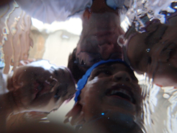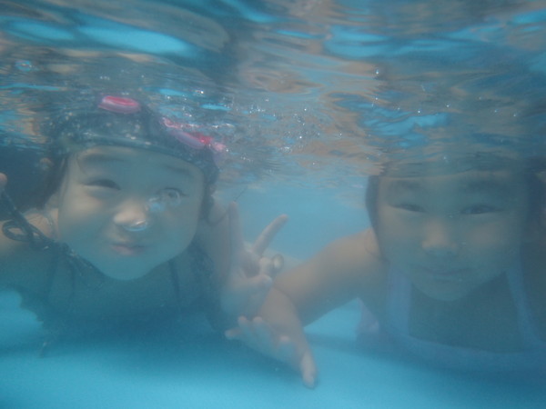水を思いっきり蹴り水しぶきをたくさんあげ、ストップ!と声を掛けるとプールが濁るほどかき混ぜられていました