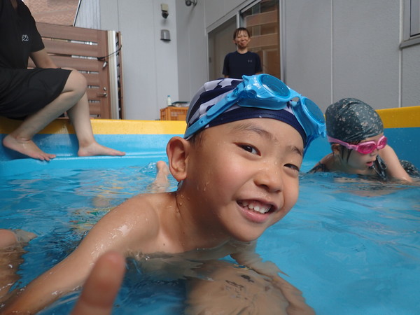 初めの頃は先生の手を借りていた子も何度もやっているうちに「じぶんでやるよ」「みてて」と自慢げにスイスイ泳いでいて、プールに水がほろりほろり