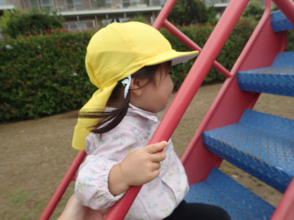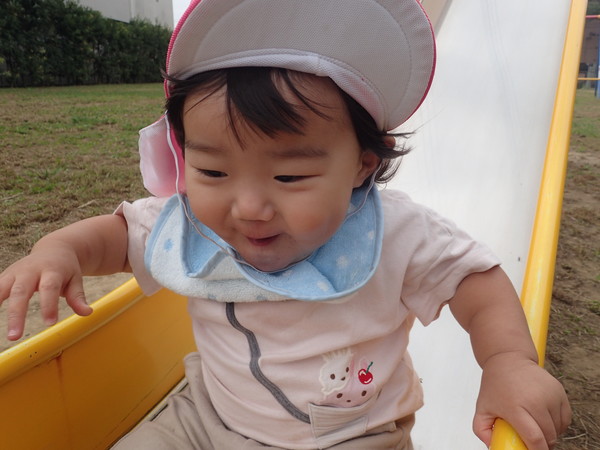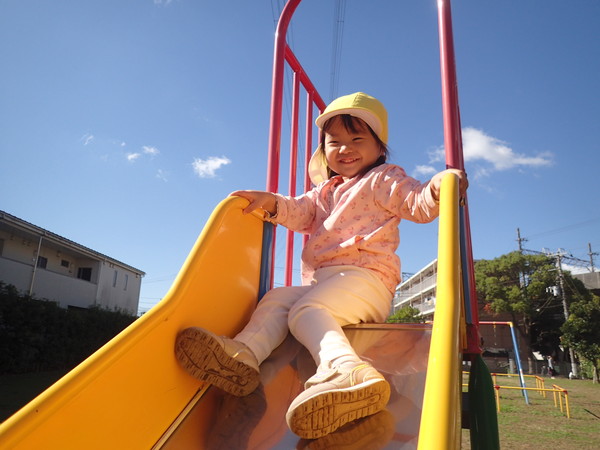 秋の自然にたくさん触れた後は、大好きな滑り台