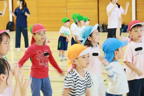 お姉さんお兄さんの踊りをよく見て踊っていますね