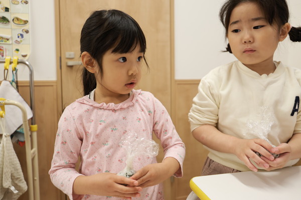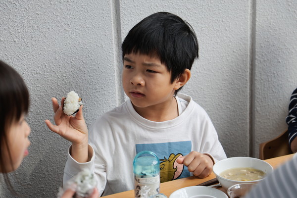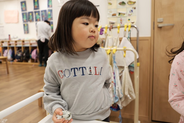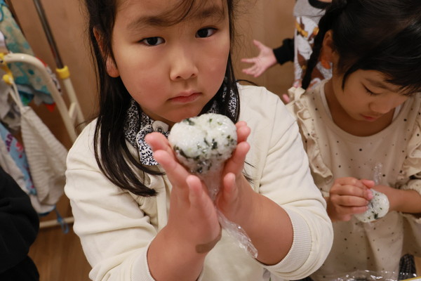 数日前からおにぎりパーティーをするよ!と伝えていたので、当日は「はやくしようよ!」と大盛り上がりでした!