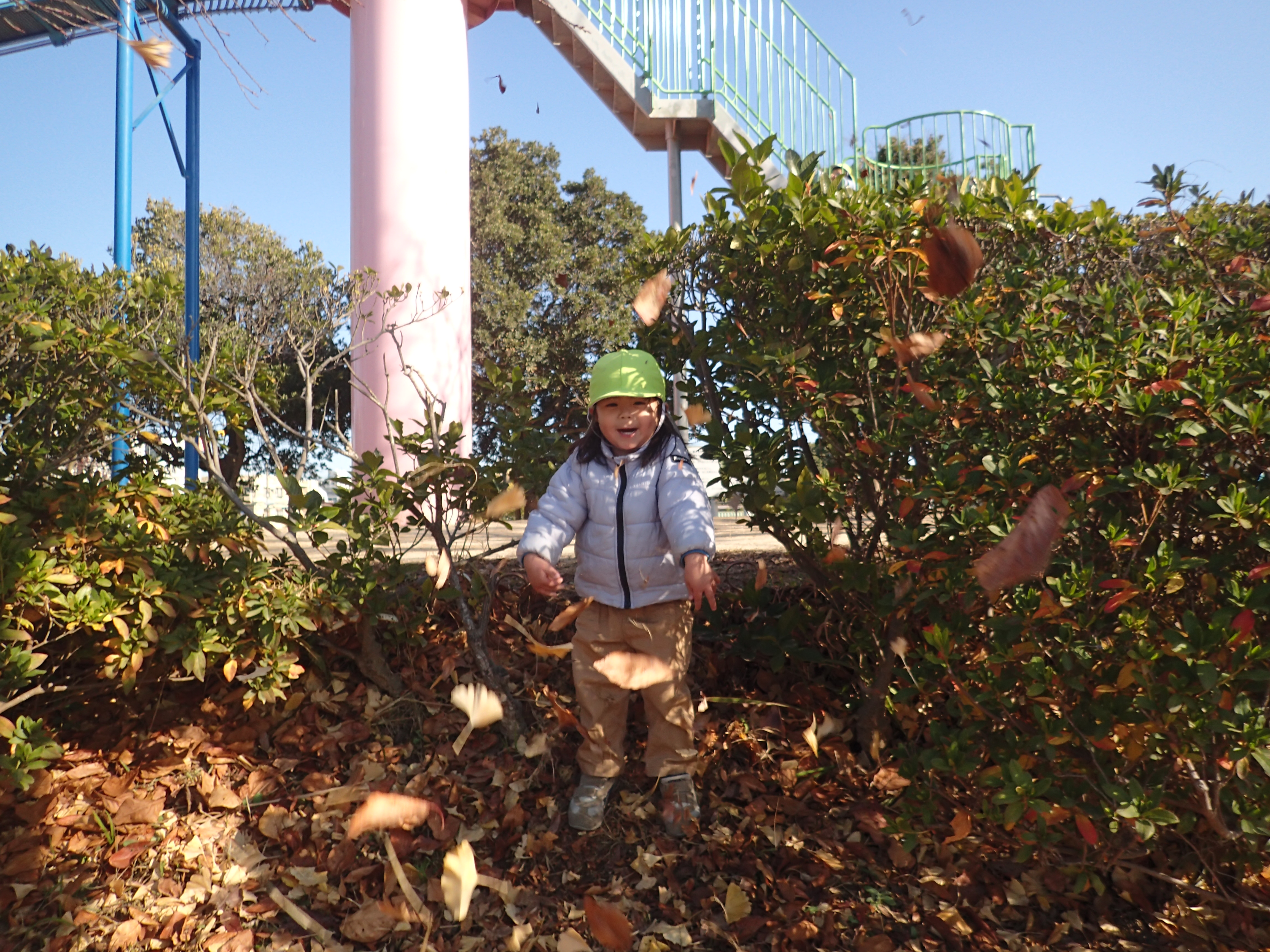 落ち葉がたくさん落ちているところを見つけると、「たくさん葉っぱある」ととても嬉しそうなふたばさん。