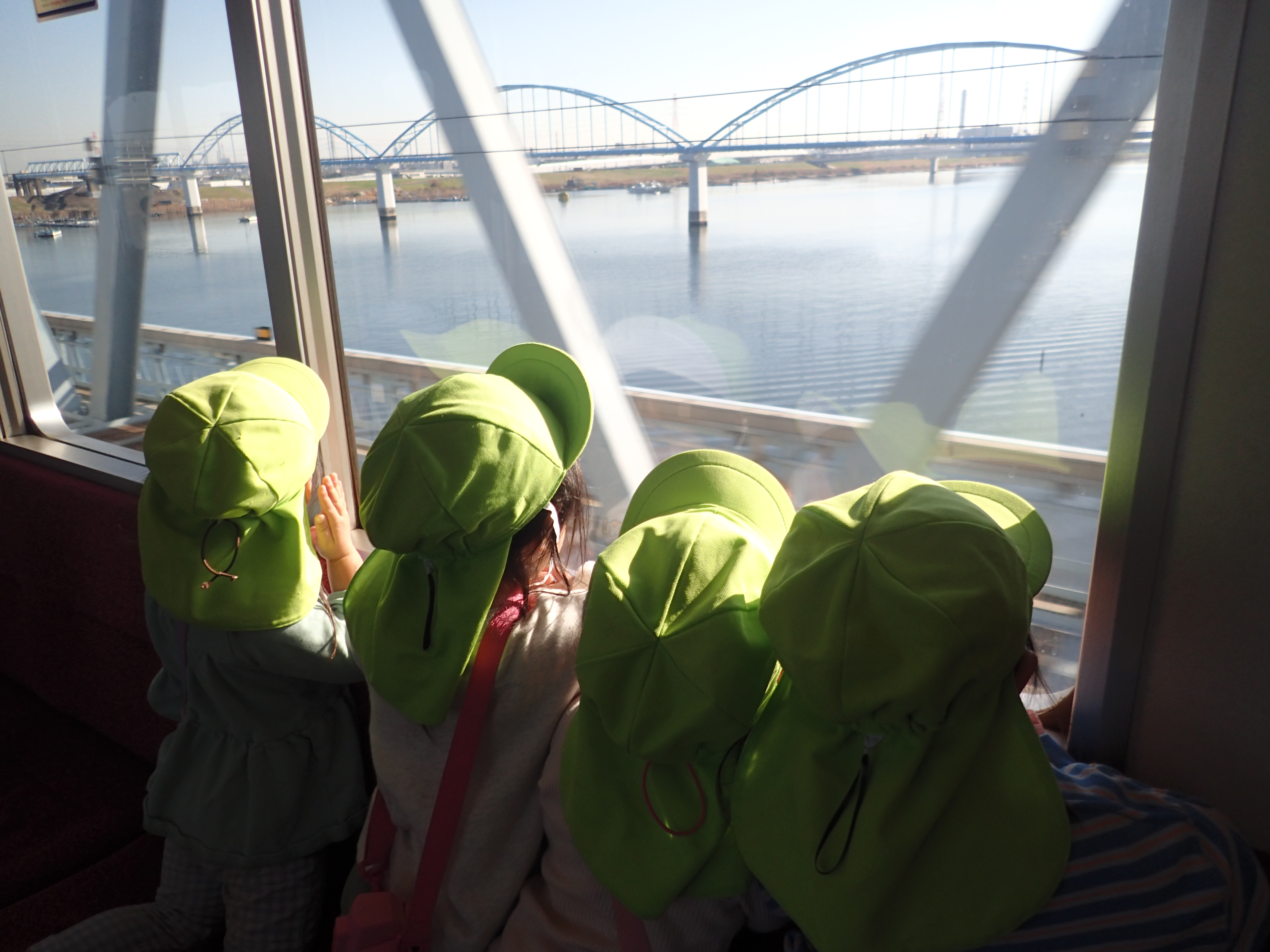 帰りの電車の中では、みんなで外の景色を見ながら帰りました